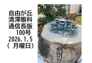 ブログを元に、最近の話題を取りまとめてこの「自由が丘清澤眼科最近の話題:長版)と、それから記事を厳選したメルマガの発信をしています。今回で100号。メルマガ読者数は患者さんを中心に(12月28日で)944人になりました。(⇒視聴登録募集。ご登録はこちらから)、登録取り消しも簡単にできます。さて、一度読めていたのに、最近メルマガ配信が中断したという方は、あなたの携帯電話の迷惑メールボックスに入っている可能性がありますので来院時に当院職員にご相談ください。