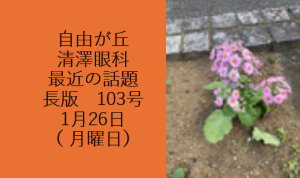 ブログを元に、最近の話題を取りまとめてこの「自由が丘清澤眼科最近の話題:長版)と、それから記事を厳選したメルマガの発信をしています。今回で102号。メルマガ読者数は患者さんを中心に(1月22日で)970人になりました。(⇒視聴登録募集。ご登録はこちらから)、登録取り消しも簡単にできます。さて、一度読めていたのに、最近メルマガ配信が中断したという方は、あなたの携帯電話の迷惑メールボックスに入っている可能性がありますので来院時に当院職員にご相談ください。