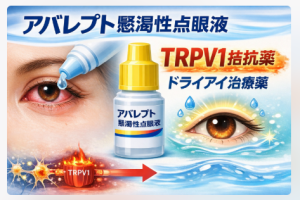 まとめると、アバレプト懸濁性点眼液は、「ドライアイ=涙不足」という従来の枠組みを一歩進め、眼表面の神経過敏という側面に正面からアプローチする初のTRPV1拮抗点眼薬です。ドライアイ診療において、「所見と症状が一致しない患者さん」を説明する際の理解を深め、治療の選択肢を広げる薬剤として位置づけられると考えられます。