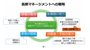 緑内障は、早期発見の機会が少なく、診断時には進行していることも多い、かつ病型も進行中に変化しうる「慢性進行性疾患」です。ですから、早く診断して治療を始めるだけでなく、「患者さん自身の自己管理支援」「病型・環境・生活習慣を踏まえた治療選択」「長期管理体制」の3つを包括的に組み合わせていくことが、生涯にわたって視機能・QOLを守るために極めて重要だと先生は締めくくっています。