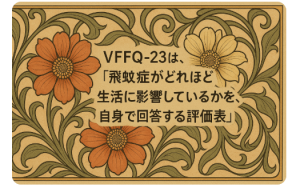 VFFQ-23は、飛蚊症(floaters)が日常生活や見え方にどれほど影響しているかを、患者さん自身が評価するために作られた質問票です。