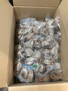 (庭も柿の葉に埋め尽くされます。)皮をむいた柿を軒先に吊るし、冬の風にさらして数週間。12月10日ごろになると、ようやく柔らかな甘さを湛えた干し柿になります。かつては多くの方が「楽しみにしています」と受け取ってくださったのですが、近年は干し柿が苦手な方も増え、差し上げる数も少しずつ減ってきました。それでも毎年、10個入りのおよそ40袋を作り続けています。「好きです」と言ってくださる方がいる限り、私はこの田舎からの冬の便りを絶やしたくないと思っています。できた干し柿も年を越すと旬を過ぎて固くなってしまします