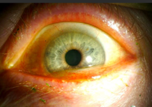 加齢とともに「目にゴロゴロする感じがする」「目に何か入っているようで気になる」「涙があふれる」といった訴えで受診される患者さんの中に、結膜弛緩症と呼ばれる状態が見つかることがあります。これは、白目を覆っている結膜が年齢変化などによってゆるみ、特に下まぶたの内側で、正常であれば存在するはずの涙のたまり(下方涙液メニスカス)の位置に、波打つように余った結膜が入り込んでしまう状態です。その結果、涙の流れが妨げられたり、瞬きのたびに結膜がこすれたりして、不快な症状が生じます。