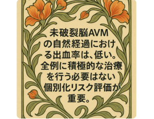 「未破裂AVM=必ずしも破裂の危険が高いとは限らない」ことを示した点で意義深い報告です。