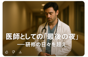 日本でも、若い医師たちはかつてほど過酷ではないにせよ、今も深夜の病棟で孤独に向き合っています。医療の進歩が彼らの負担を減らし、そして患者とのつながりを守る形で進むことを願わずにはいられません。