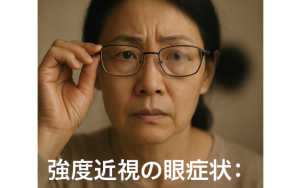 強度近視のある方では、眼球が前後方向に伸びることで網膜や脈絡膜が薄くなり、年齢とともに黄斑部の変性や視野の狭窄が生じやすくなります。さらに強度近視は正常眼圧緑内障の大きな危険因子であり、気づかないうちに視野が欠けてしまうこともあります。ここでは、日常生活で気を付けていただきたい事柄と、眼科で行える対応策をまとめました。