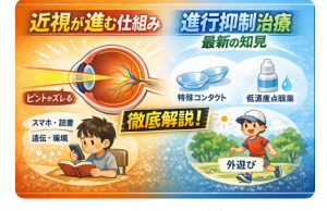 近視は今、世界的に増え続けており、将来は世界人口の約半数が近視になると予測されています。特に問題となるのは、子どもの頃に始まる近視です。小児期の近視は年齢とともに進みやすく、強くなると将来、網膜や視神経の病気につながる可能性があります。そのため「早めに気づき、進行を抑える」ことがとても重要になります。本稿では、近視が進む仕組みと、現在行われている進行抑制治療について、最新の知見をもとに分かりやすく整理します。