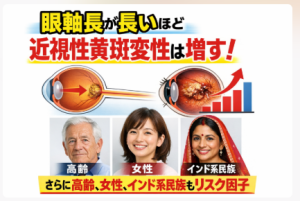 高度近視で本質的に問題となるのは、眼球が物理的に伸びることによる網膜や脈絡膜の菲薄化、後部ぶどう腫形成などの構造変化です。これらは屈折値ではなく眼軸長そのものに依存します。今回の研究が示した26mmという数値は、「度数の境界」を示すものではなく、「合併症リスクが加速し始める物理的長さ」を示している点に大きな意義があります。小児期の近視進行抑制が重視される背景には、この構造的閾値の存在があります。将来の視力を守るためには、眼鏡度数の推移だけでなく、眼軸長を継続的に管理する視点が不可欠です。