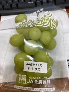 今朝、自由が丘駅構内のスーパーでいつもの弁当と一緒にシャインマスカットを購入しました。価格は900円。かつては「高級果物」として数千円で並んでいた印象のある品種が、今年は比較的手ごろな値段で店頭に出回っていると感じました。天候がよく作柄が安定したことが背景にあるようです。市場の相場をみると、1房数千円が一般的ですが、近年は出荷量の増加や小粒品の増加によって値がこなれてきています。ニュースによれば、卸売価格も昨年よりやや安く推移しており、今回の900円という価格はむしろお買い得だったのかもしれません。