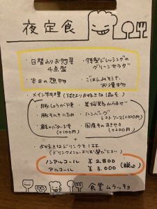 ムラッチョの料理は「家庭料理にプロの丁寧さを加えた定食」。昼は日替わり定食や定番の「生姜焼き」「唐揚げ」「ハンバーグ」などを提供し、価格はおおむね1,000円前後、夜のワイン付きのディナーでも3000円と手頃。素材の味を大切にしながら、どの皿にも野菜や副菜が添えられており、栄養バランスに気を配った構成です。口コミでも「しっかり食べても胃が重くならない」「家庭の味だけどプロの仕事が感じられる」といった声が多く、男女問わず支持されています。