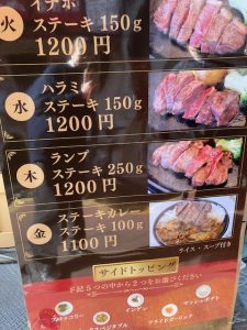 ランチは1000円台、中心は1200円前後。しっかりしたステーキを、日常の昼食として楽しんでもらいたい、という思いからの決断とのことでした。実際にその効果はすぐに表れているようで、私が通りかかった時も、ランチタイムの店内は以前より明らかに活気がありました。