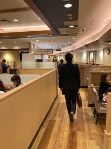 地下への入口は広いのですが外から店内の様子は伺えず、これまで何となく入りそびれていました。しかし本日は、自由が丘に移って4年目、飲食店店長の経験もある税理士事務所の私の医院の担当者氏と意を決して訪問。実際に足を踏み入れてみると、想像以上の開放感でした。テーブル席はナンバーで100卓近くもあり、家族連れ、高校生のグループ、落ち着いたご夫婦まで、客層は実に幅広い印象です。南口前の大戸屋や大井町線の向こうにあるサイゼリアのような大衆的なお店でした。